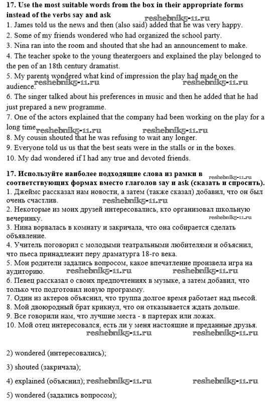 Готовая домашняя работа с ответами по Английскому языку за 8 класс Афанасьева, Михеева, Баранова Рабочая тетрадь Rainbow Дрофа 2016 ФГОС - Unit 2. Performing arts: theatre 17