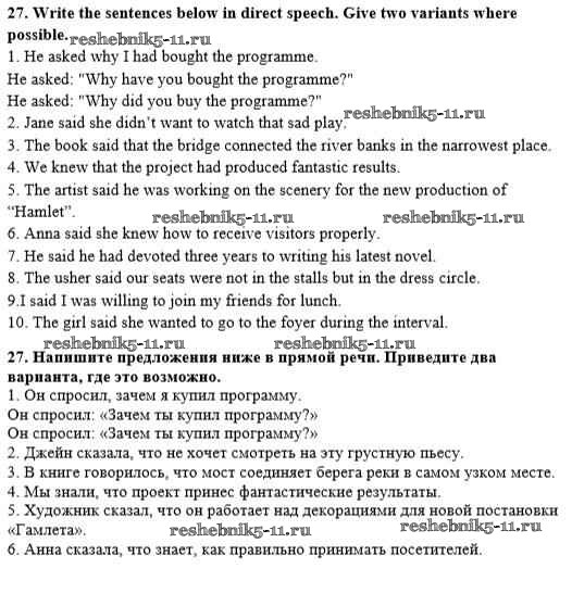 Готовая домашняя работа с ответами по Английскому языку за 8 класс Афанасьева, Михеева, Баранова Рабочая тетрадь Rainbow Дрофа 2016 ФГОС - Unit 2. Performing arts: theatre 27