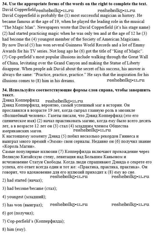 Готовая домашняя работа с ответами по Английскому языку за 8 класс Афанасьева, Михеева, Баранова Рабочая тетрадь Rainbow Дрофа 2016 ФГОС - Unit 2. Performing arts: theatre 34