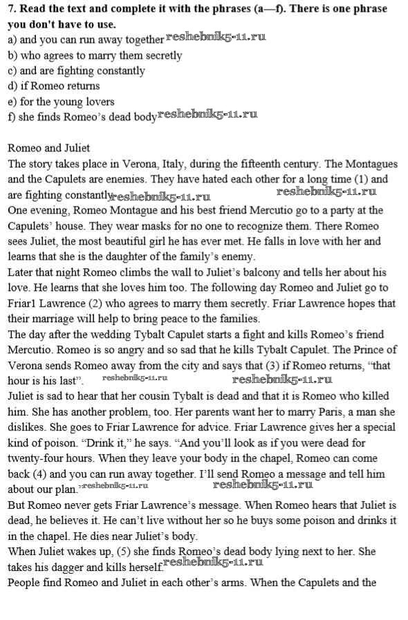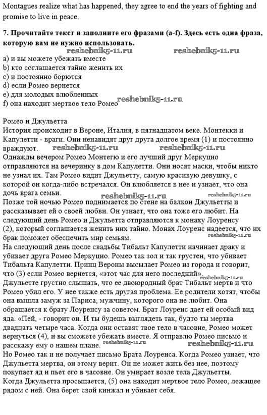 Готовая домашняя работа с ответами по Английскому языку за 8 класс Афанасьева, Михеева, Баранова Рабочая тетрадь Rainbow Дрофа 2016 ФГОС - Unit 2. Performing arts: theatre 7