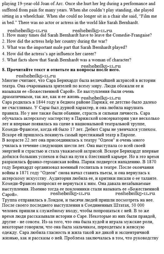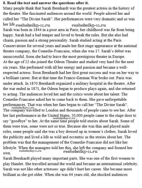 Готовая домашняя работа с ответами по Английскому языку за 8 класс Афанасьева, Михеева, Баранова Рабочая тетрадь Rainbow Дрофа 2016 ФГОС - Unit 2. Performing arts: theatre 8