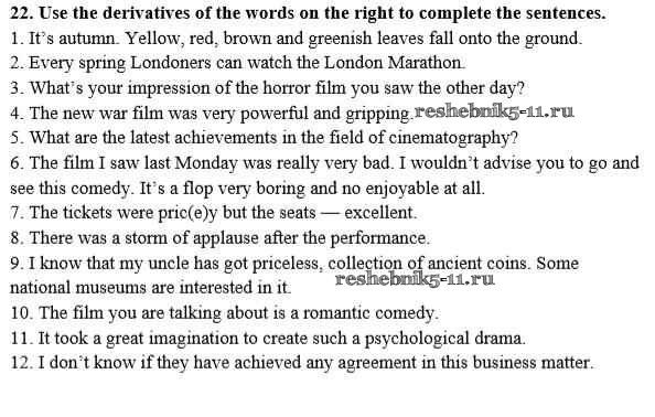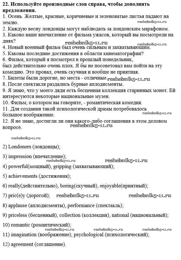 Готовая домашняя работа с ответами по Английскому языку за 8 класс Афанасьева, Михеева, Баранова Рабочая тетрадь Rainbow Дрофа 2016 ФГОС - Unit 3. Performing arts: cinema 22