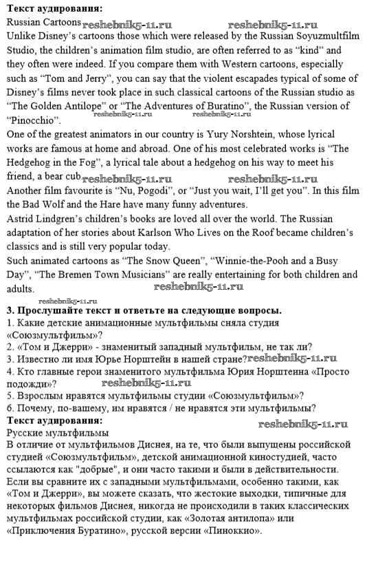Готовая домашняя работа с ответами по Английскому языку за 8 класс Афанасьева, Михеева, Баранова Рабочая тетрадь Rainbow Дрофа 2016 ФГОС - Unit 3. Performing arts: cinema 3