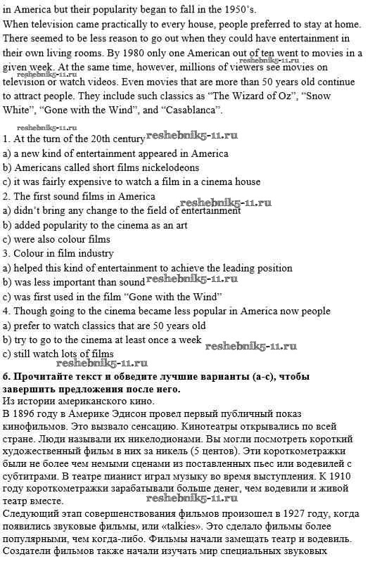 Готовая домашняя работа с ответами по Английскому языку за 8 класс Афанасьева, Михеева, Баранова Рабочая тетрадь Rainbow Дрофа 2016 ФГОС - Unit 3. Performing arts: cinema 6