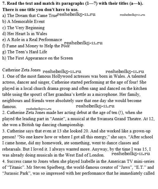 Готовая домашняя работа с ответами по Английскому языку за 8 класс Афанасьева, Михеева, Баранова Рабочая тетрадь Rainbow Дрофа 2016 ФГОС - Unit 3. Performing arts: cinema 7