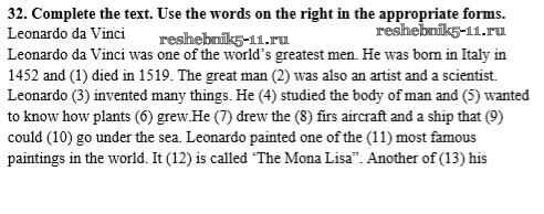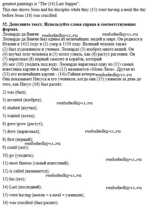 Готовая домашняя работа с ответами по Английскому языку за 8 класс Афанасьева, Михеева, Баранова Рабочая тетрадь Rainbow Дрофа 2016 ФГОС - Unit 4. The whole world knows them 32