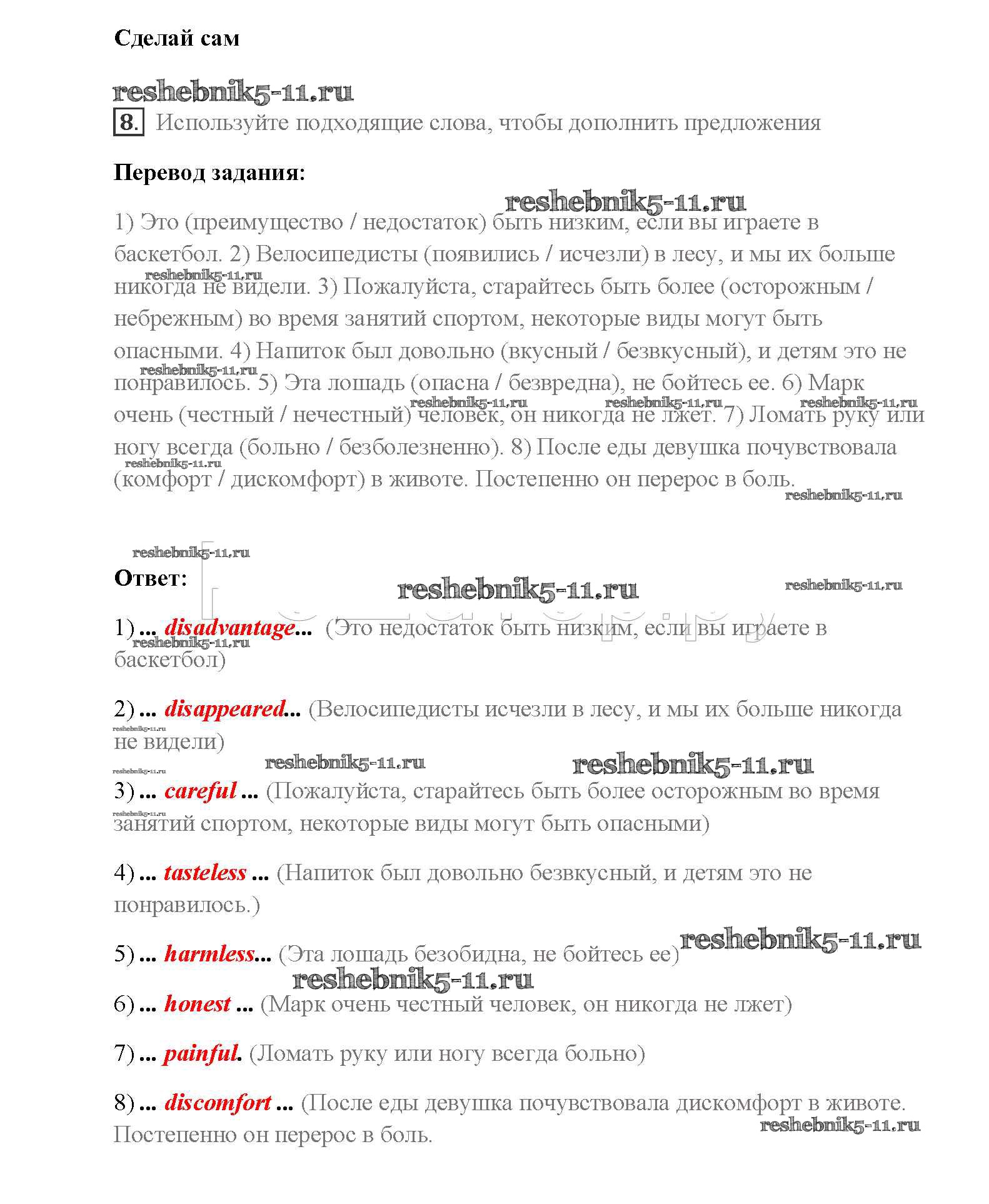 Готовая домашняя работа с ответами по Английскому языку за 8 класс Афанасьева, Михеева, Баранова Учебник Rainbow Дрофа 2016 ФГОС - Step 4 8