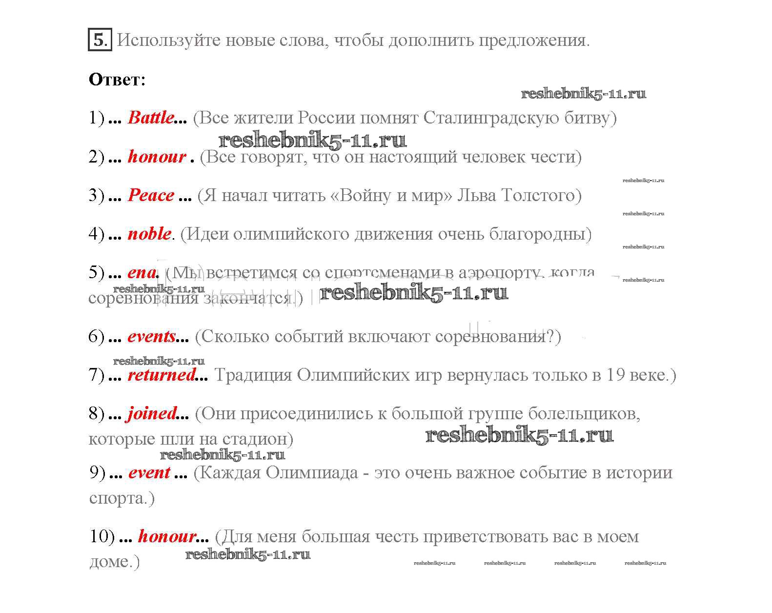 Готовая домашняя работа с ответами по Английскому языку за 8 класс Афанасьева, Михеева, Баранова Учебник Rainbow Дрофа 2016 ФГОС - Step 5 5