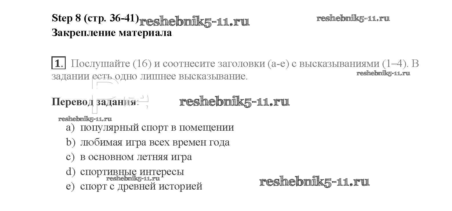 Готовая домашняя работа с ответами по Английскому языку за 8 класс Афанасьева, Михеева, Баранова Учебник Rainbow Дрофа 2016 ФГОС - Step 8 1