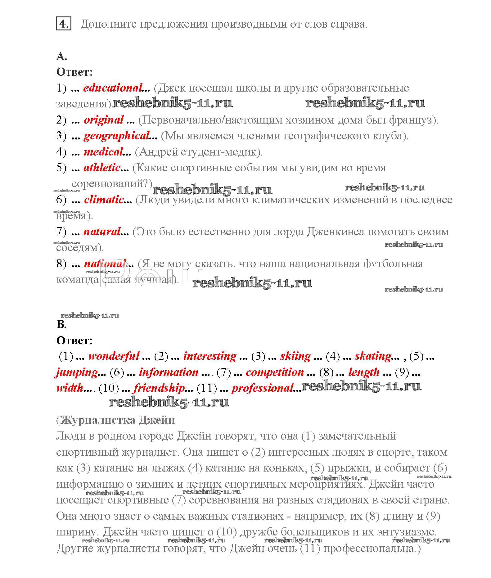 Готовая домашняя работа с ответами по Английскому языку за 8 класс Афанасьева, Михеева, Баранова Учебник Rainbow Дрофа 2016 ФГОС - Step 8 4