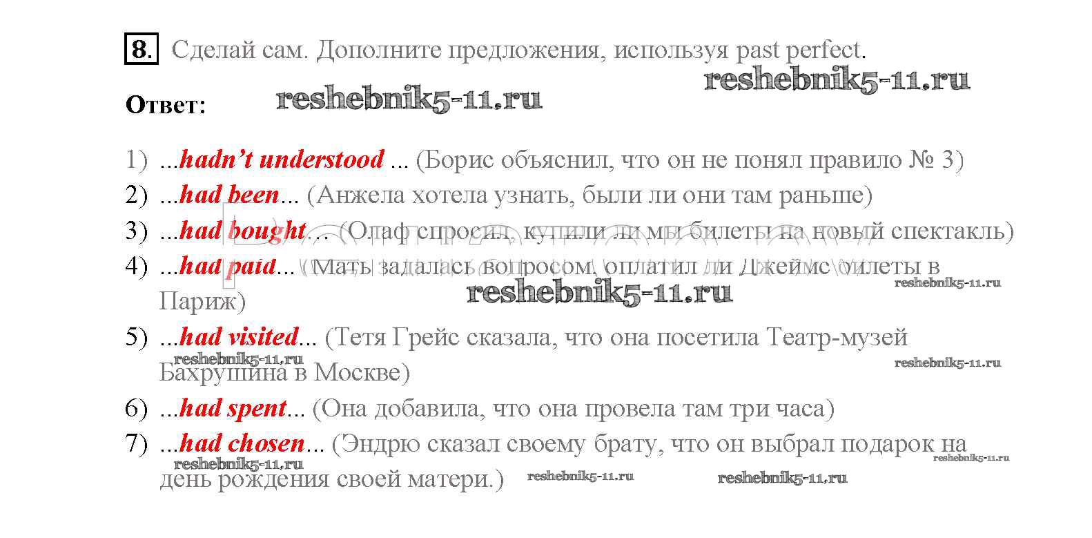 Готовая домашняя работа с ответами по Английскому языку за 8 класс Афанасьева, Михеева, Баранова Учебник Rainbow Дрофа 2016 ФГОС - Step 5 8