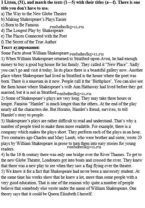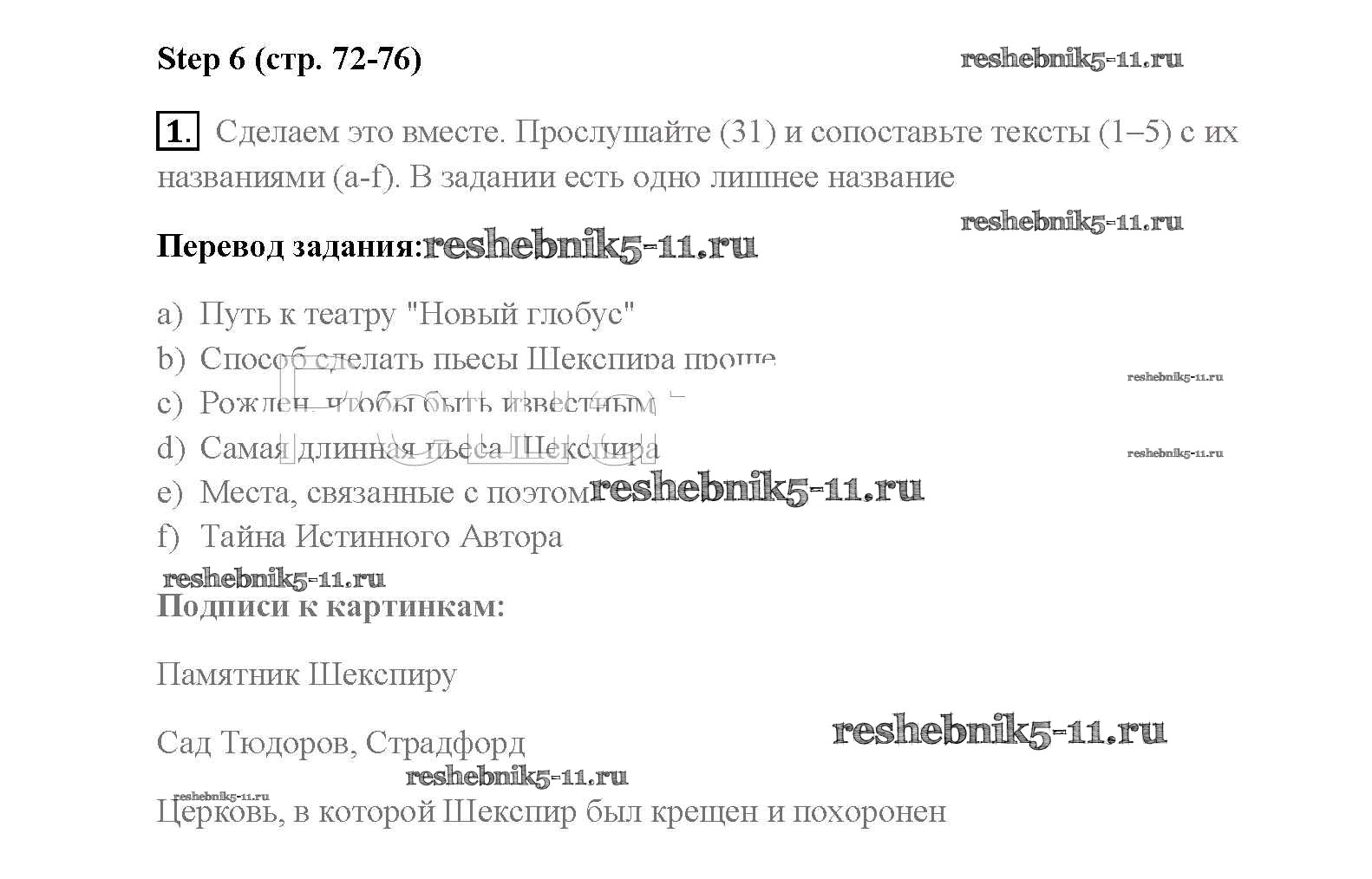 Готовая домашняя работа с ответами по Английскому языку за 8 класс Афанасьева, Михеева, Баранова Учебник Rainbow Дрофа 2016 ФГОС - Step 6 1