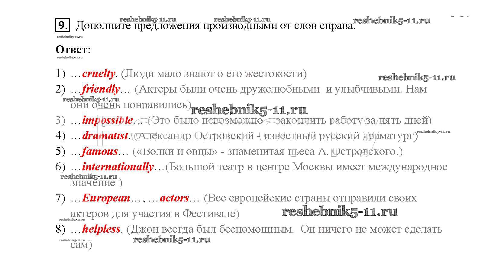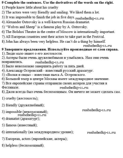 Готовая домашняя работа с ответами по Английскому языку за 8 класс Афанасьева, Михеева, Баранова Учебник Rainbow Дрофа 2016 ФГОС - Step 8 9