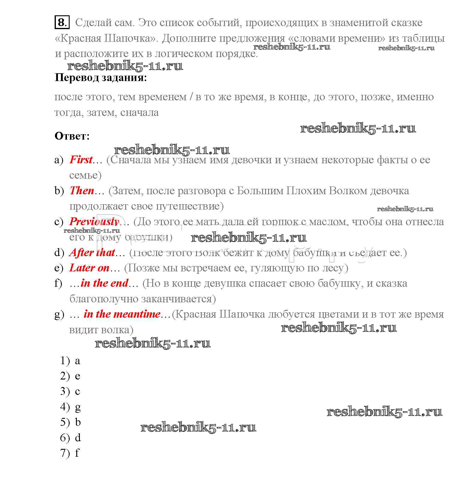 Готовая домашняя работа с ответами по Английскому языку за 8 класс Афанасьева, Михеева, Баранова Учебник Rainbow Дрофа 2016 ФГОС - Step 9 8