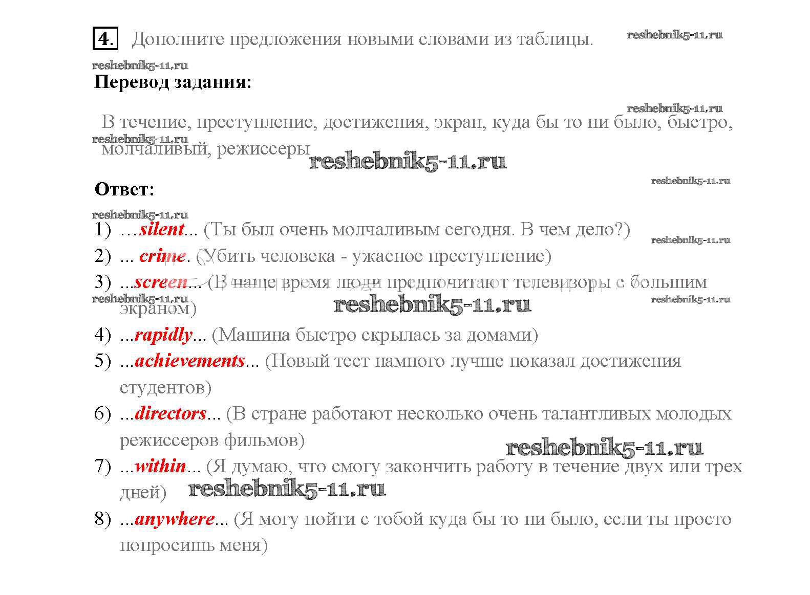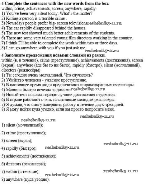 Готовая домашняя работа с ответами по Английскому языку за 8 класс Афанасьева, Михеева, Баранова Учебник Rainbow Дрофа 2016 ФГОС - Step 1 4