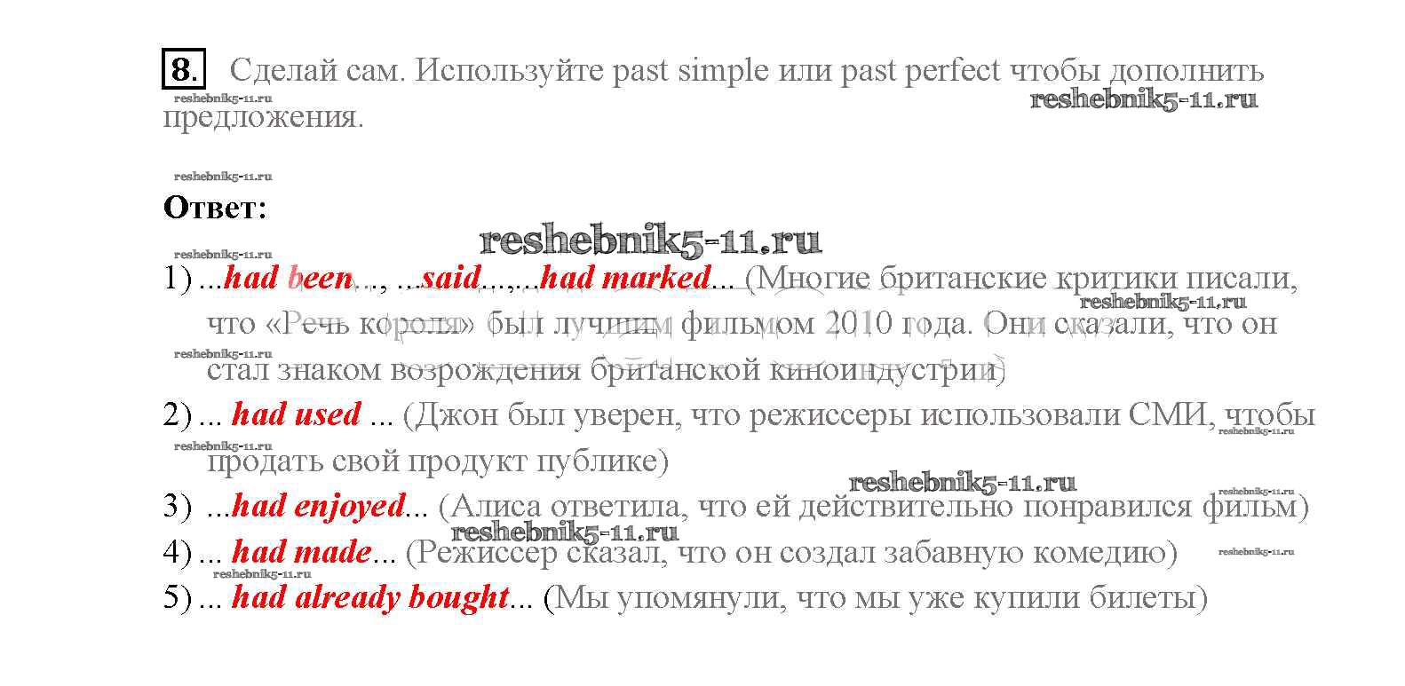 Готовая домашняя работа с ответами по Английскому языку за 8 класс Афанасьева, Михеева, Баранова Учебник Rainbow Дрофа 2016 ФГОС - Step 1 8