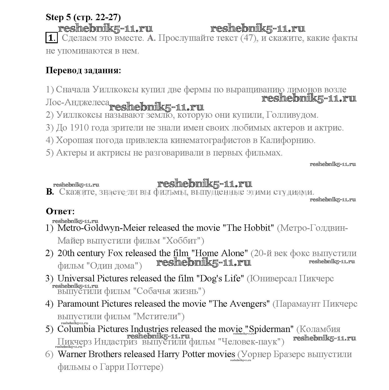 Готовая домашняя работа с ответами по Английскому языку за 8 класс Афанасьева, Михеева, Баранова Учебник Rainbow Дрофа 2016 ФГОС - Step 5 1