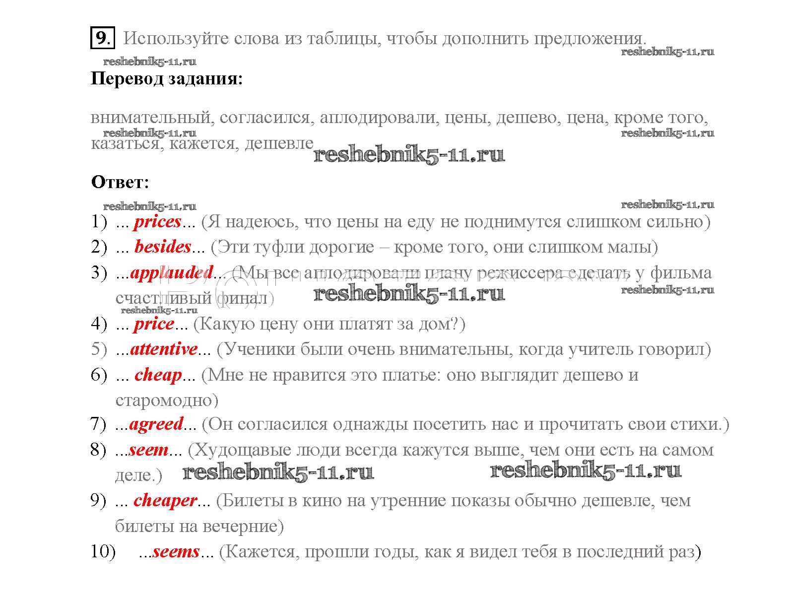 Готовая домашняя работа с ответами по Английскому языку за 8 класс Афанасьева, Михеева, Баранова Учебник Rainbow Дрофа 2016 ФГОС - Step 5 9