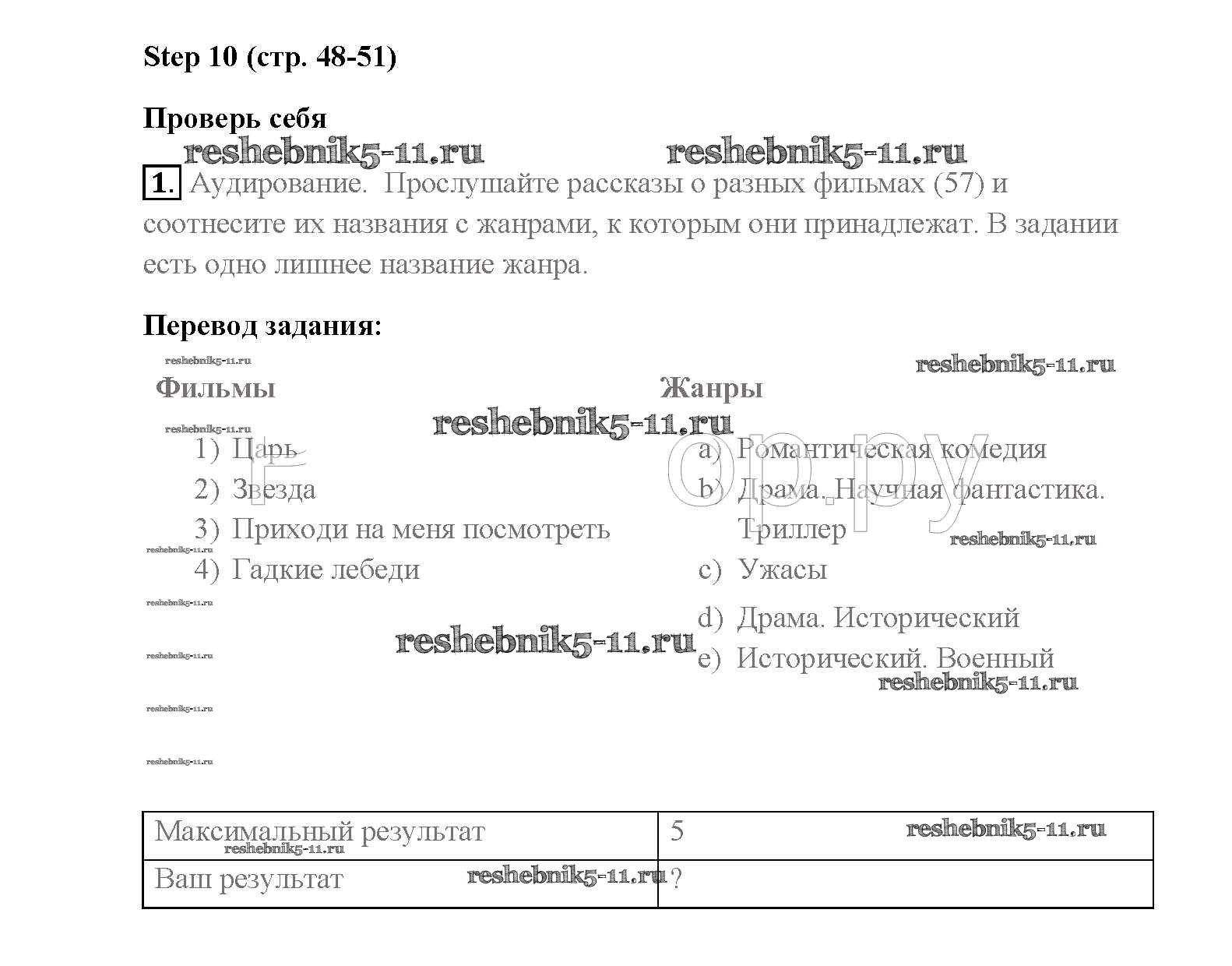Готовая домашняя работа с ответами по Английскому языку за 8 класс Афанасьева, Михеева, Баранова Учебник Rainbow Дрофа 2016 ФГОС - Step 10 1
