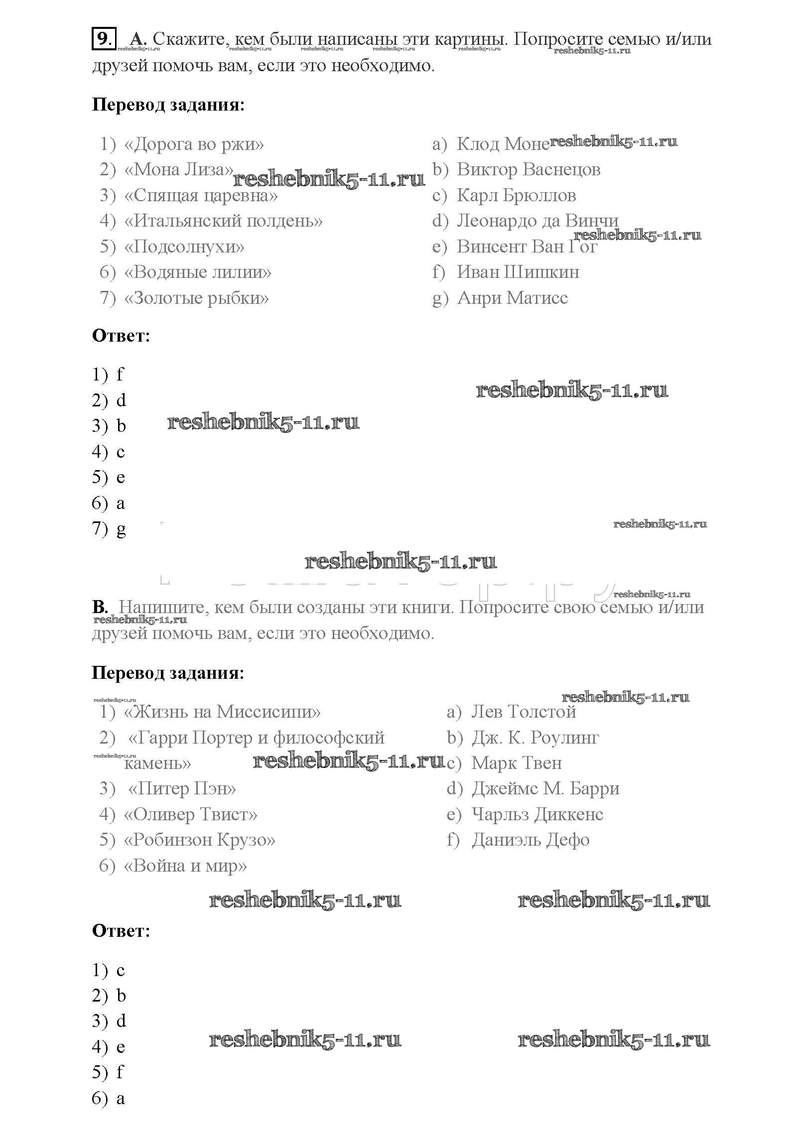 Готовая домашняя работа с ответами по Английскому языку за 8 класс Афанасьева, Михеева, Баранова Учебник Rainbow Дрофа 2016 ФГОС - Step 1 9