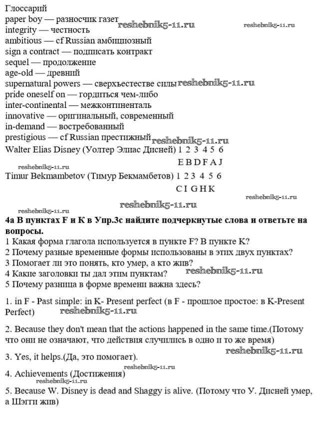 Готовая домашняя работа с ответами по Английскому языку за 8 класс Дворецкая, Казырбаева, Кузеванова, Мичурина, Новикова, Талзи, Шалимова Учебник New Millennium Титул 2014 ФГОС - Урок 1-2 4a