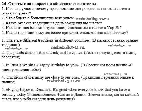 Готовая домашняя работа с ответами по Английскому языку за 8 класс Дворецкая, Казырбаева, Кузеванова, Мичурина, Новикова, Талзи, Шалимова Учебник New Millennium Титул 2014 ФГОС - Урок 1 2d