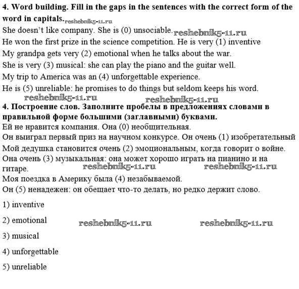 Готовая домашняя работа с ответами по Английскому языку за 8 класс Кузовлёв, Перегудова, Лапа, Костина, Дуванова, Кобец, Кузнецова Рабочая тетрадь Просвещение 2014 ФГОС - Consolidation 4