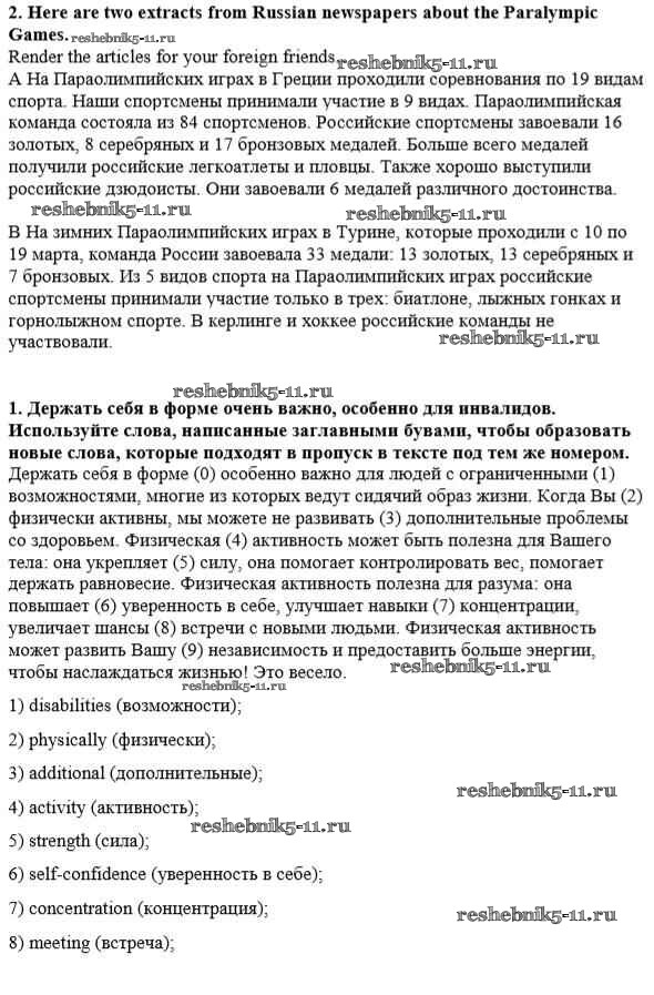 Готовая домашняя работа с ответами по Английскому языку за 8 класс Кузовлёв, Перегудова, Лапа, Костина, Дуванова, Кобец, Кузнецова Рабочая тетрадь Просвещение 2014 ФГОС - Unit 4. Are you fond of sport? урок 5