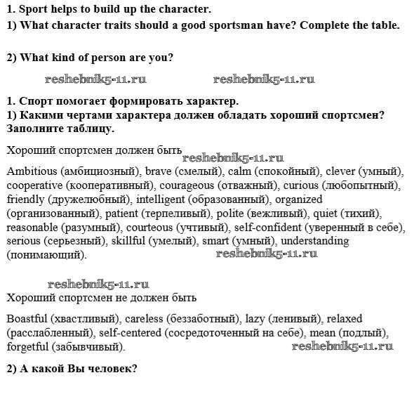 Готовая домашняя работа с ответами по Английскому языку за 8 класс Кузовлёв, Перегудова, Лапа, Костина, Дуванова, Кобец, Кузнецова Рабочая тетрадь Просвещение 2014 ФГОС - Unit 4. Are you fond of sport? урок 6