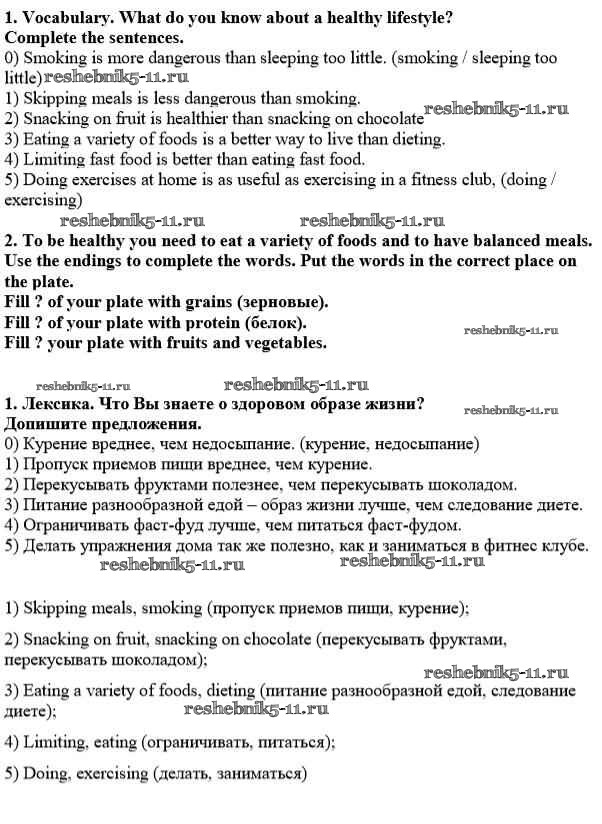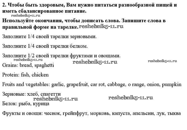 Готовая домашняя работа с ответами по Английскому языку за 8 класс Кузовлёв, Перегудова, Лапа, Костина, Дуванова, Кобец, Кузнецова Рабочая тетрадь Просвещение 2014 ФГОС - Unit 5. A healthy living guide урок 2