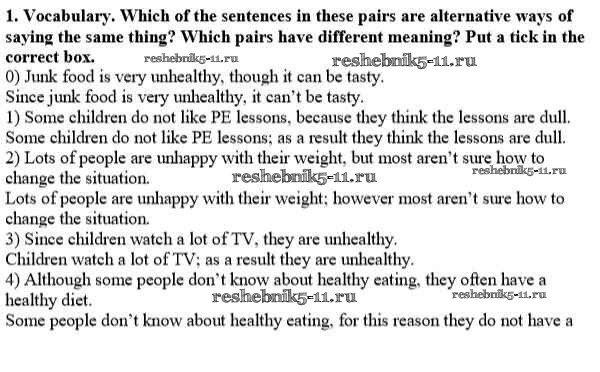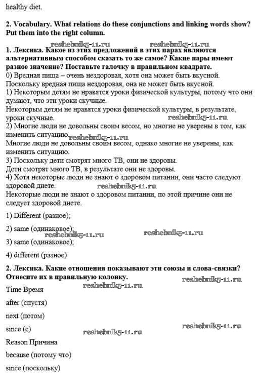 Готовая домашняя работа с ответами по Английскому языку за 8 класс Кузовлёв, Перегудова, Лапа, Костина, Дуванова, Кобец, Кузнецова Рабочая тетрадь Просвещение 2014 ФГОС - Unit 5. A healthy living guide урок 8-9