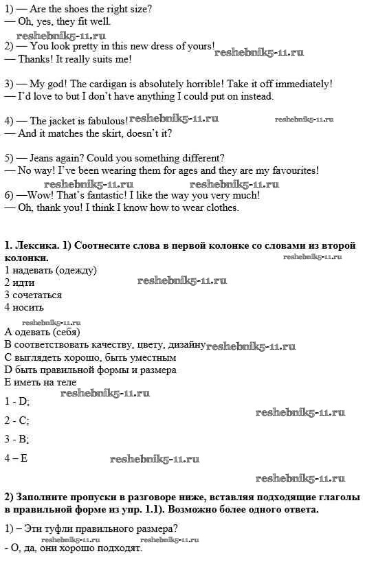 Готовая домашняя работа с ответами по Английскому языку за 8 класс Кузовлёв, Перегудова, Лапа, Костина, Дуванова, Кобец, Кузнецова Рабочая тетрадь Просвещение 2014 ФГОС - Unit 6. Changing times, changing styles урок 7