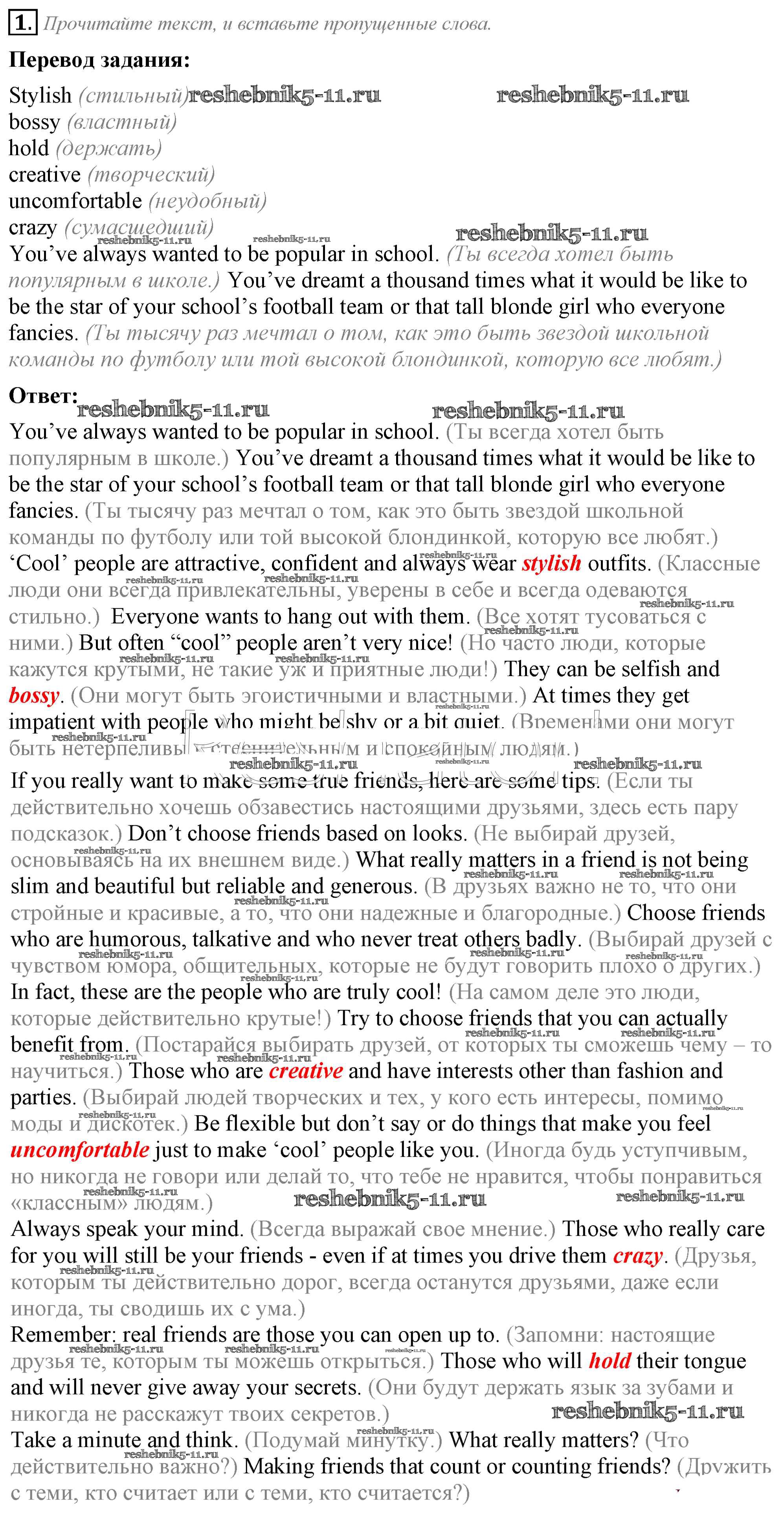 Готовая домашняя работа с ответами по Английскому языку за 8 класс Ваулина, Дули, Подоляко, Эванс Рабочая тетрадь Spotlight Просвещение 2016 ФГОС - Часть 1g 1