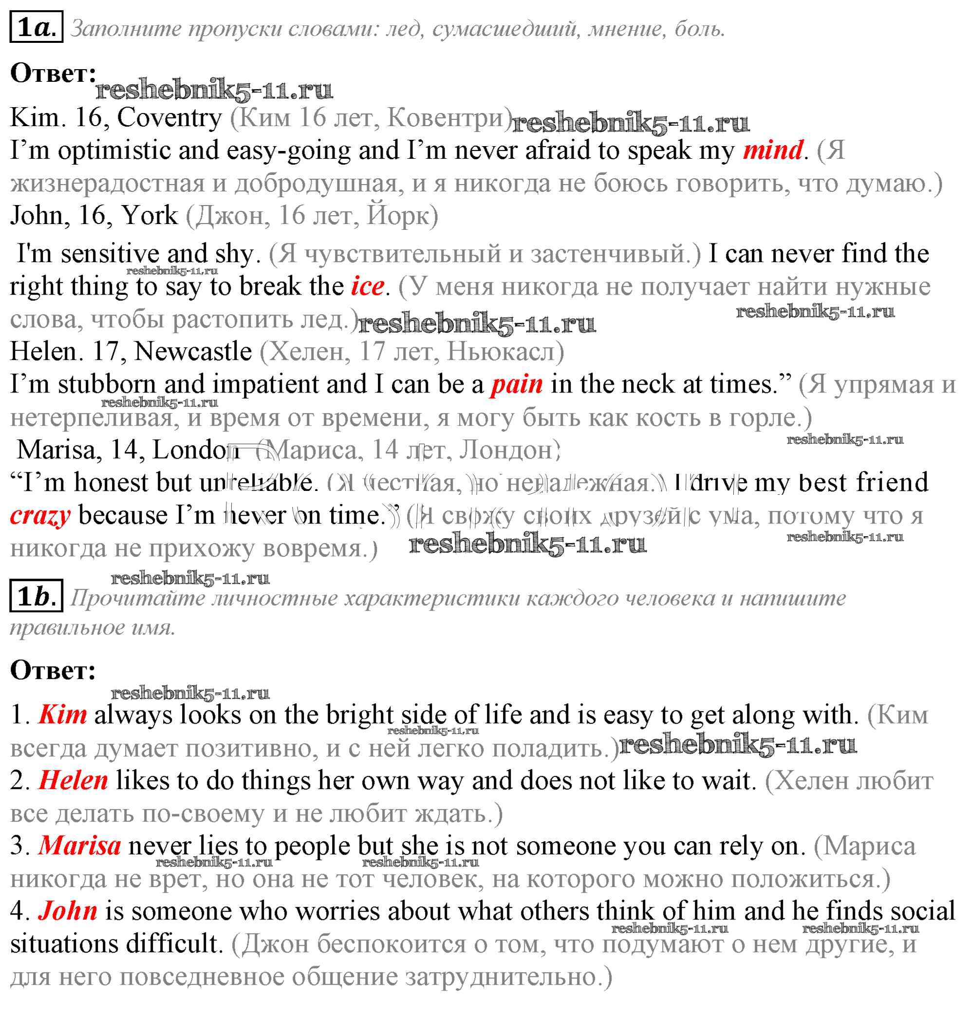 Готовая домашняя работа с ответами по Английскому языку за 8 класс Ваулина, Дули, Подоляко, Эванс Рабочая тетрадь Spotlight Просвещение 2016 ФГОС - Часть 1h 1