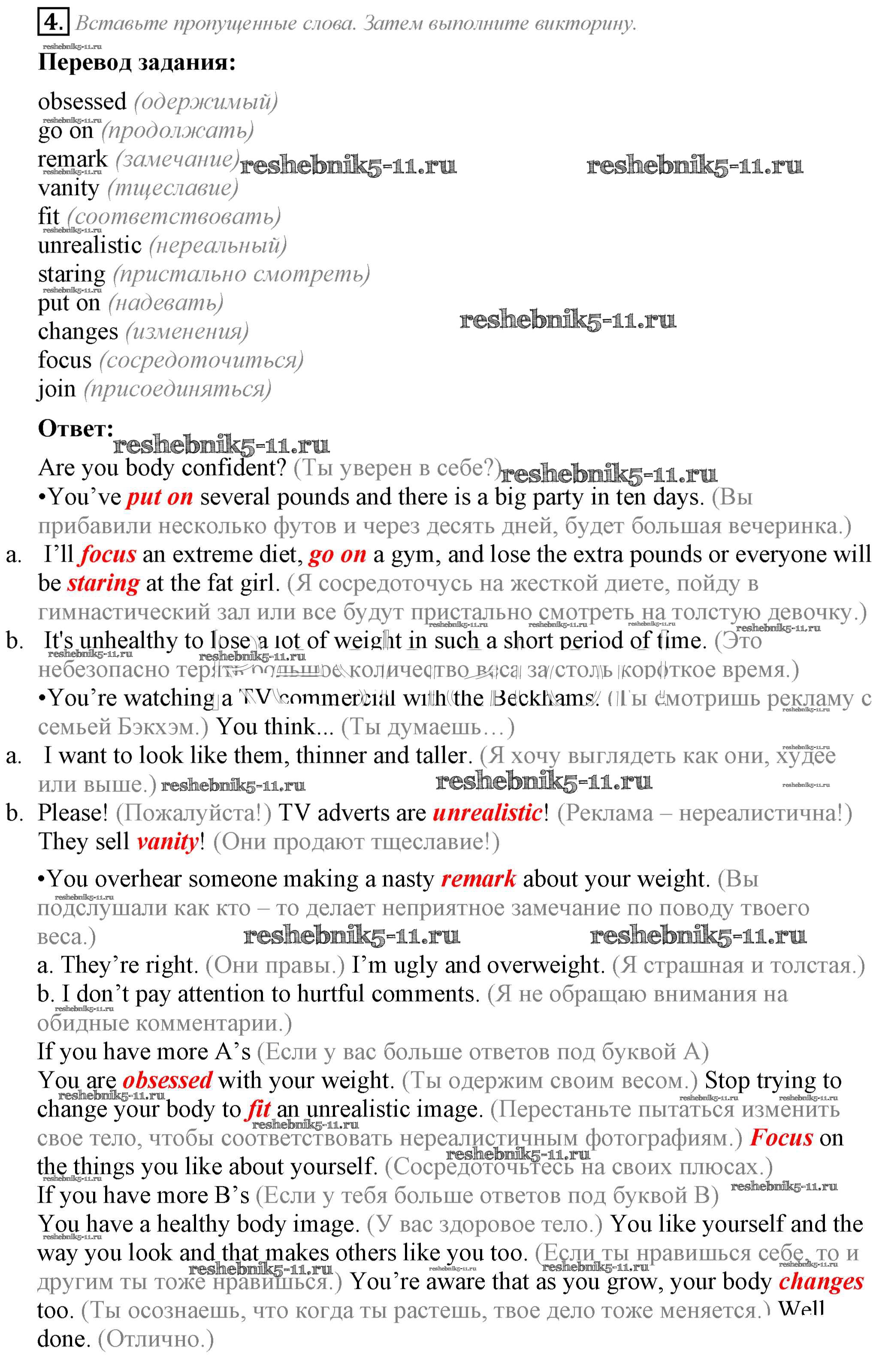 Готовая домашняя работа с ответами по Английскому языку за 8 класс Ваулина, Дули, Подоляко, Эванс Рабочая тетрадь Spotlight Просвещение 2016 ФГОС - Часть 4a 4
