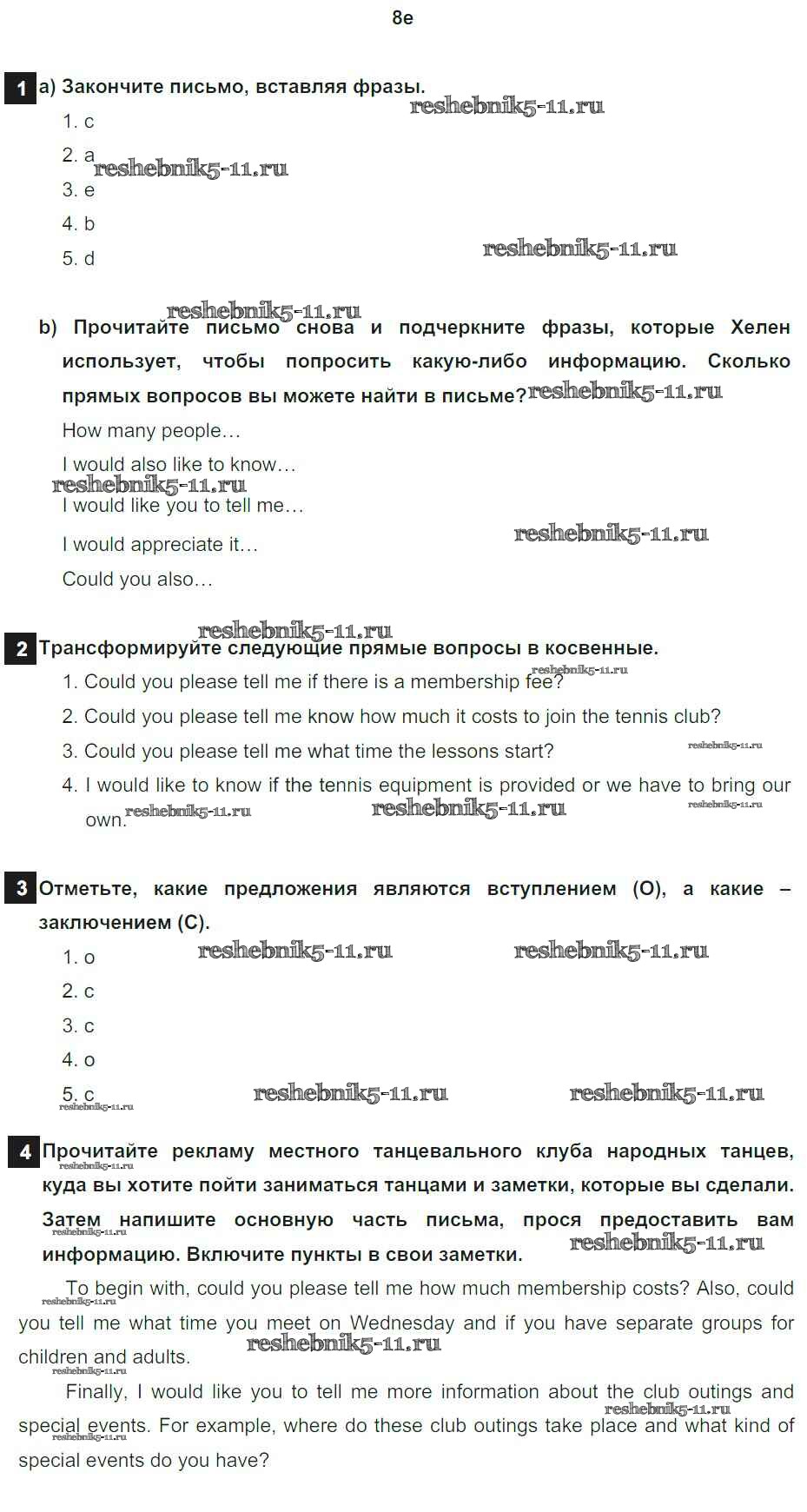 Готовая домашняя работа с ответами по Английскому языку за 8 класс Ваулина, Дули, Подоляко, Эванс Рабочая тетрадь Spotlight Просвещение 2016 ФГОС - Module 8 8e