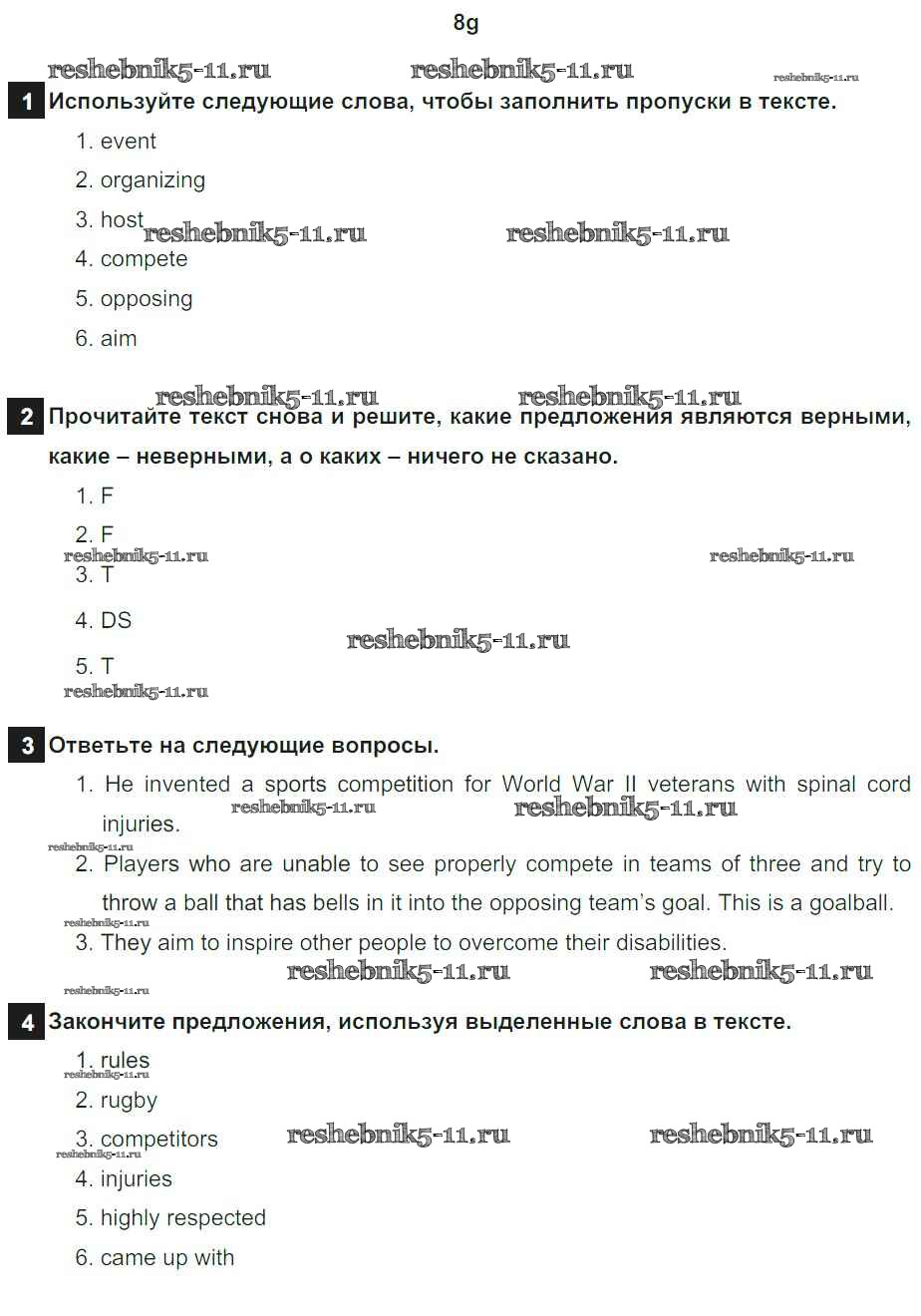 Готовая домашняя работа с ответами по Английскому языку за 8 класс Ваулина, Дули, Подоляко, Эванс Рабочая тетрадь Spotlight Просвещение 2016 ФГОС - Module 8 8g