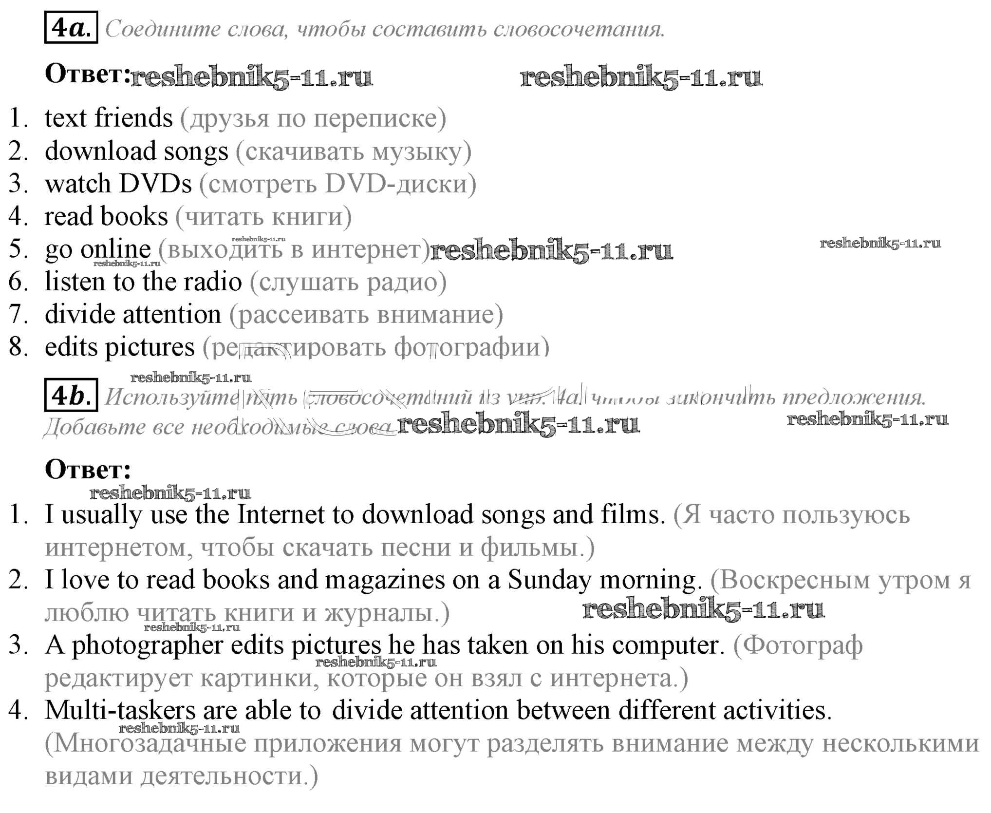 Готовая домашняя работа с ответами по Английскому языку за 8 класс Ваулина, Дули, Подоляко, Эванс Рабочая тетрадь Spotlight Просвещение 2016 ФГОС - Часть 7a 4