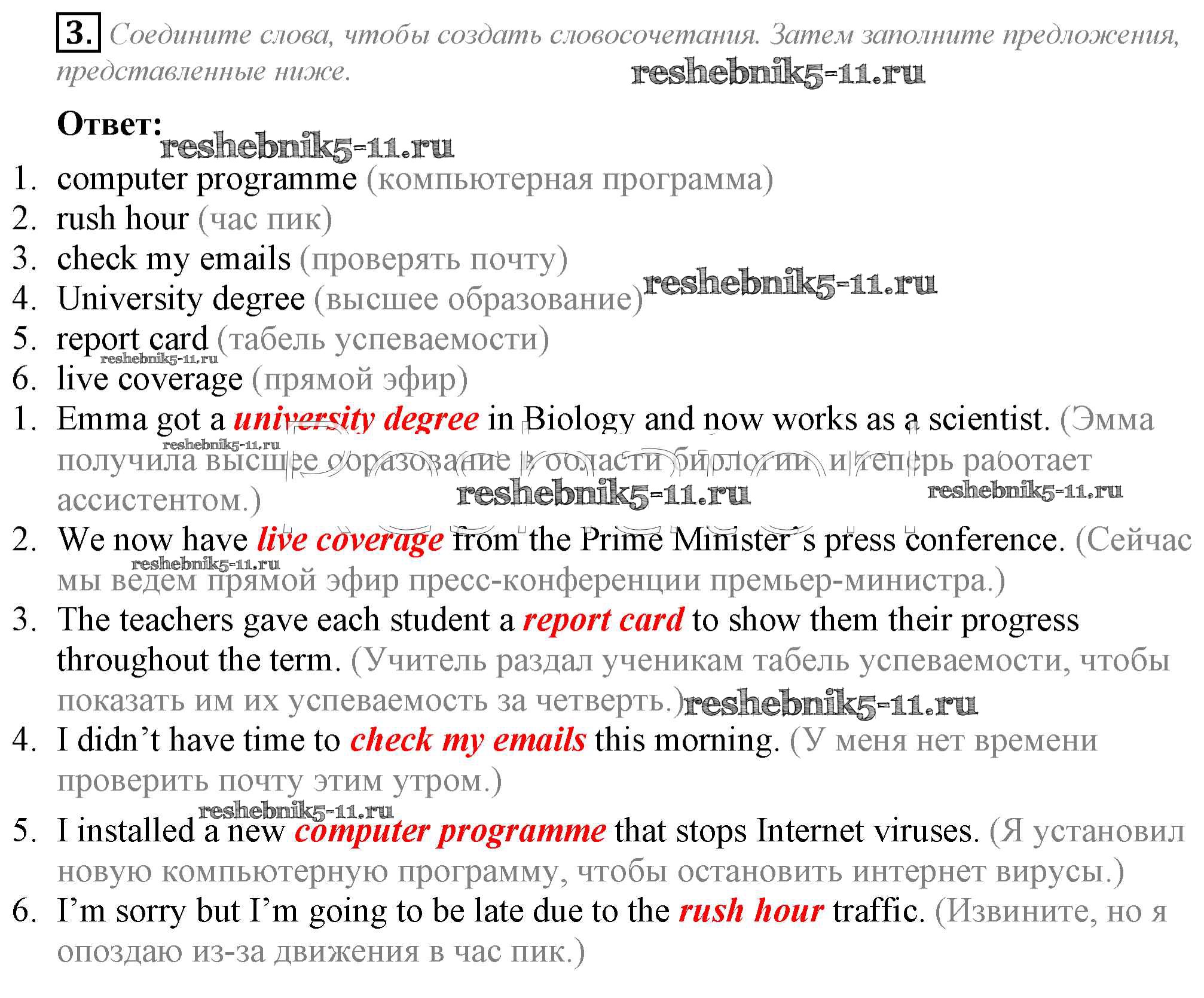 Готовая домашняя работа с ответами по Английскому языку за 8 класс Ваулина, Дули, Подоляко, Эванс Рабочая тетрадь Spotlight Просвещение 2016 ФГОС - Часть 7h 3