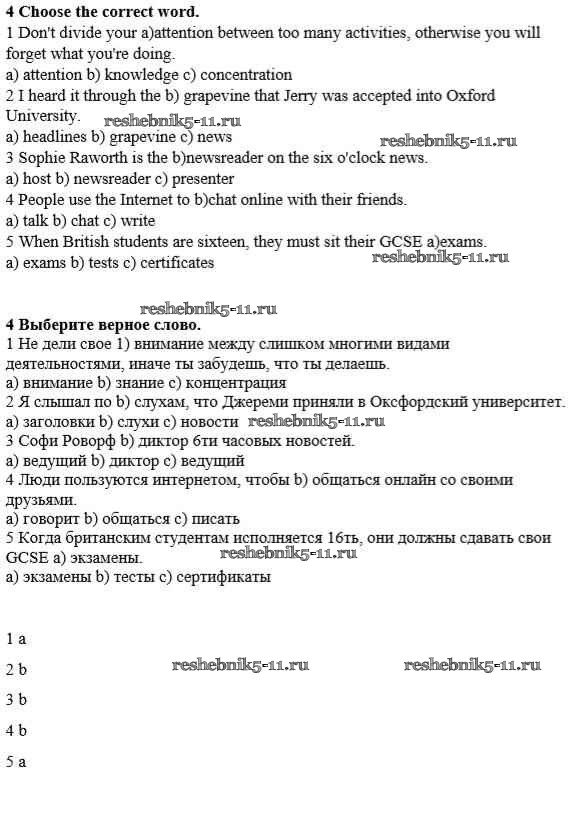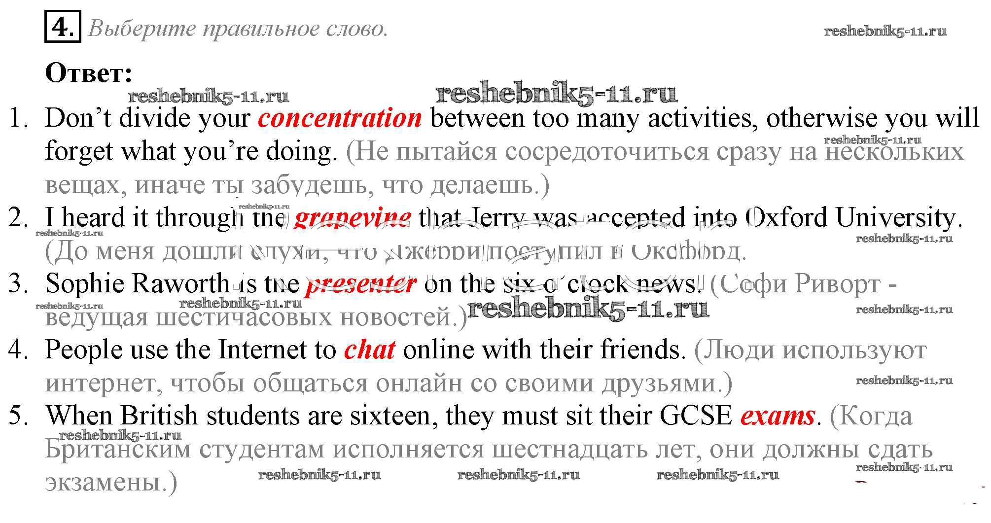Готовая домашняя работа с ответами по Английскому языку за 8 класс Ваулина, Дули, Подоляко, Эванс Рабочая тетрадь Spotlight Просвещение 2016 ФГОС - Часть 7h 4