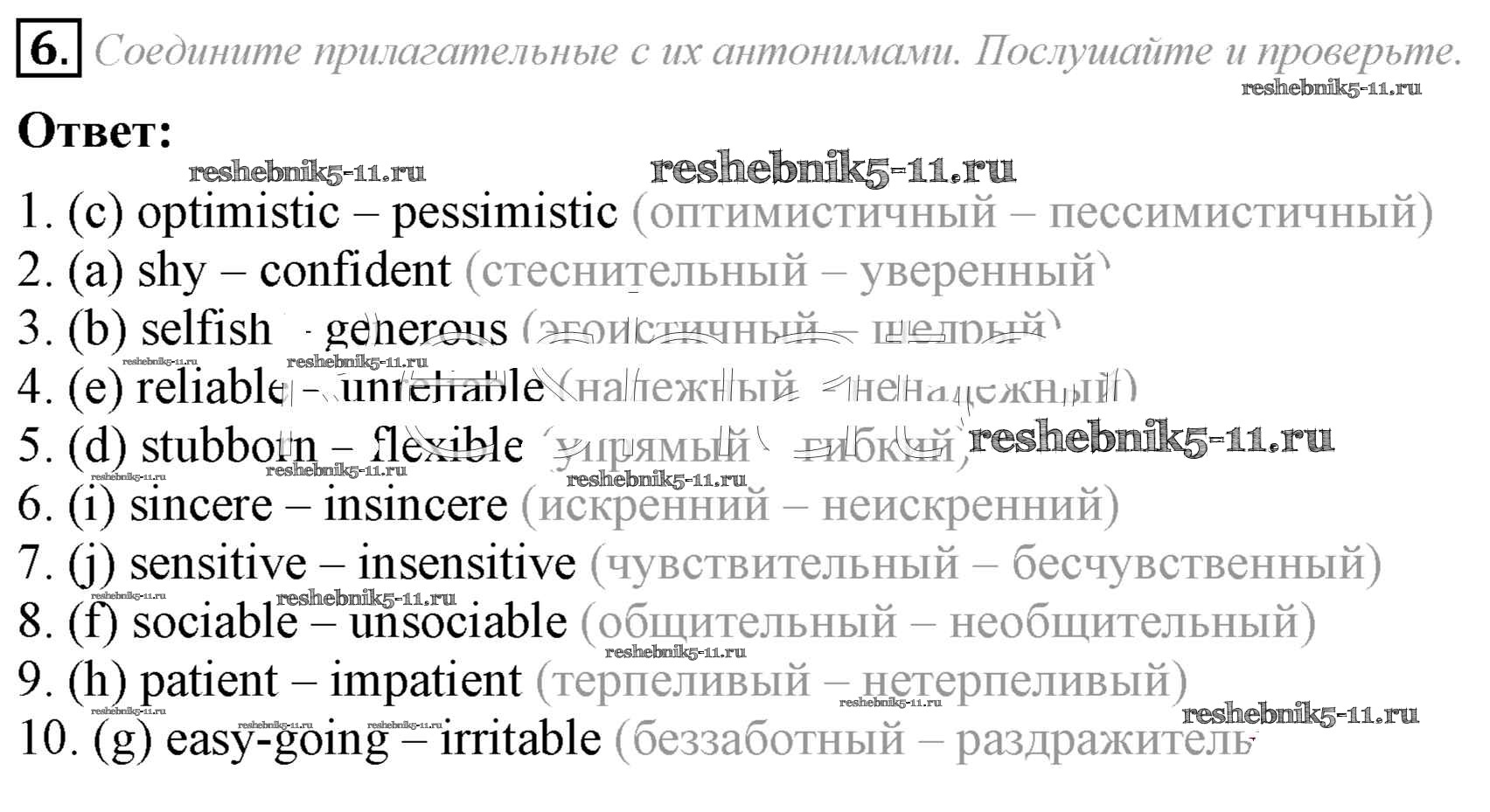 Готовая домашняя работа с ответами по Английскому языку за 8 класс Ваулина, Дули, Эванс, Подоляко Учебник Spotlight Просвещение 2015 ФГОС - Часть 1a 6