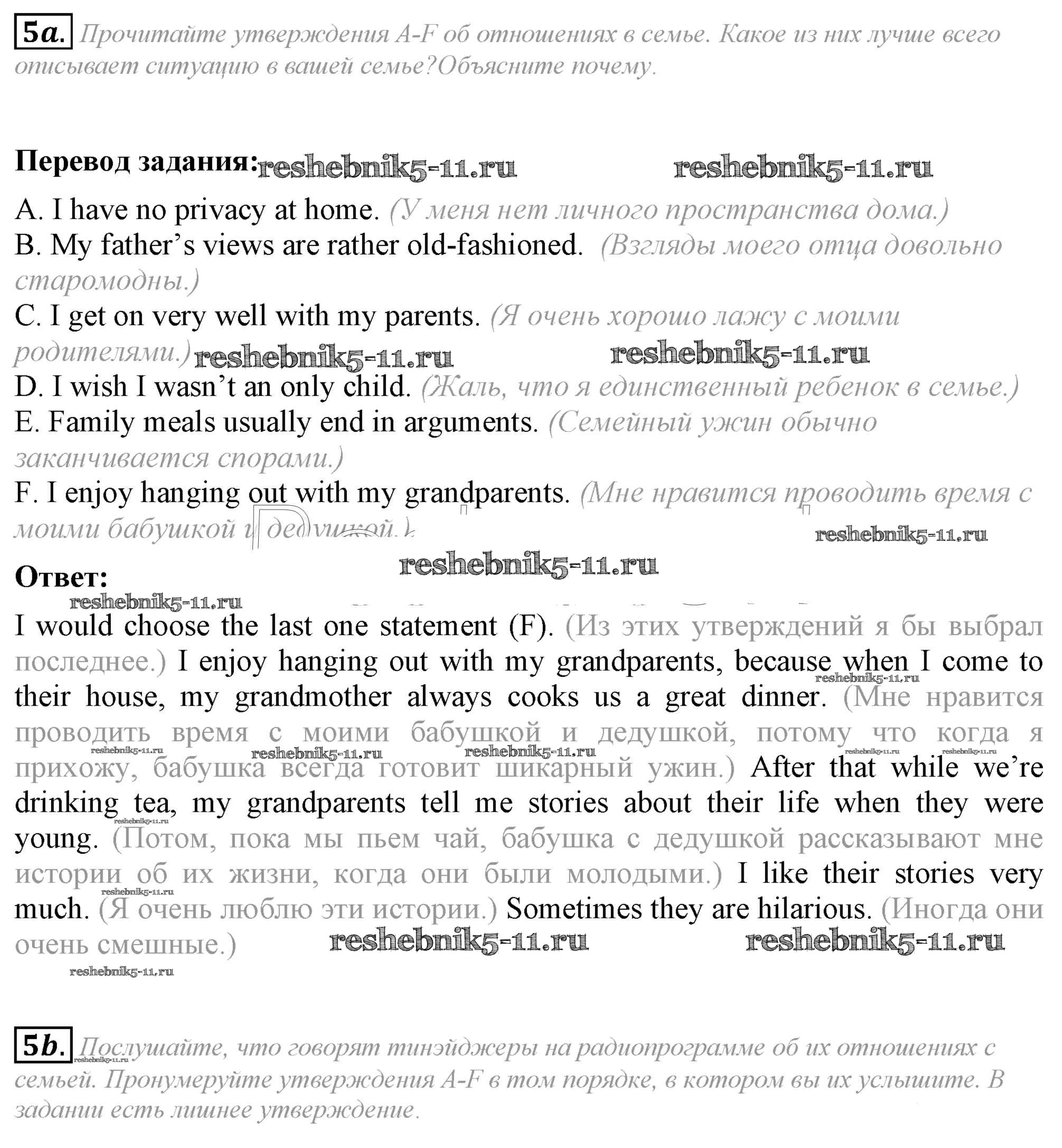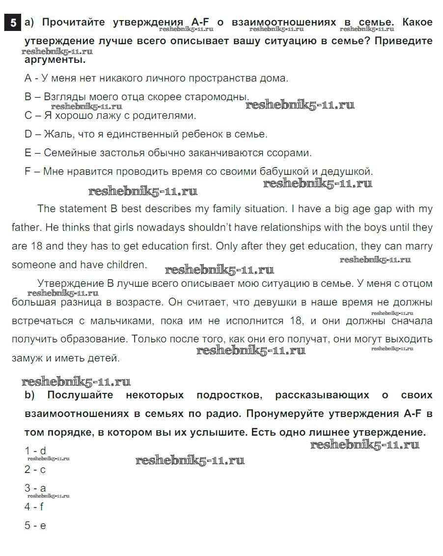 Готовая домашняя работа с ответами по Английскому языку за 8 класс Ваулина, Дули, Эванс, Подоляко Учебник Spotlight Просвещение 2015 ФГОС - Часть 1b 5