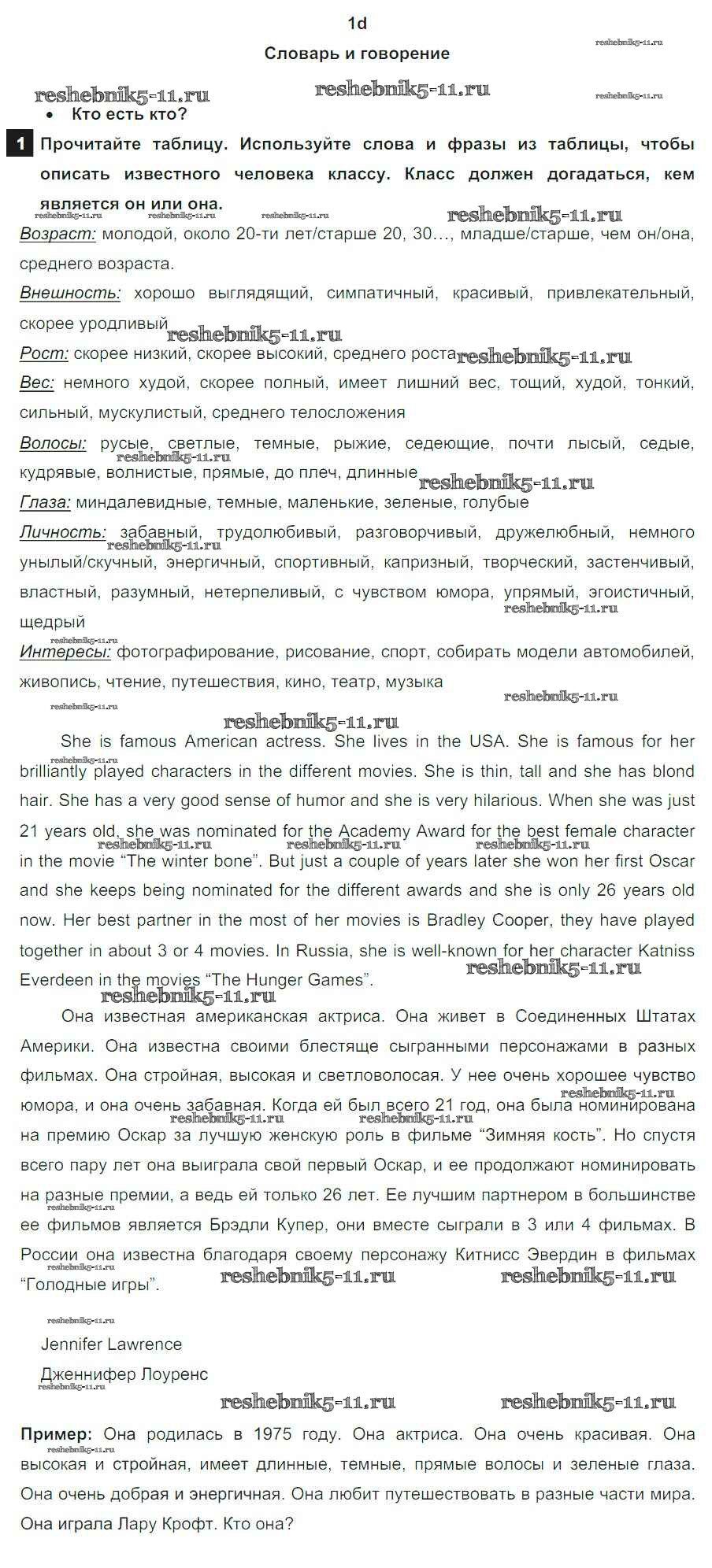 Готовая домашняя работа с ответами по Английскому языку за 8 класс Ваулина, Дули, Эванс, Подоляко Учебник Spotlight Просвещение 2015 ФГОС - Часть 1d 1