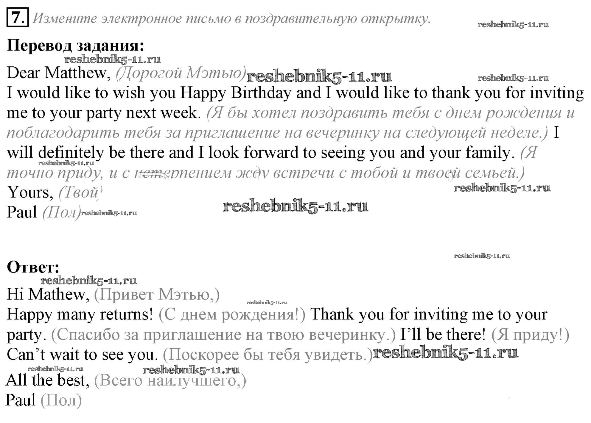 Готовая домашняя работа с ответами по Английскому языку за 8 класс Ваулина, Дули, Эванс, Подоляко Учебник Spotlight Просвещение 2015 ФГОС - Часть 1e 7