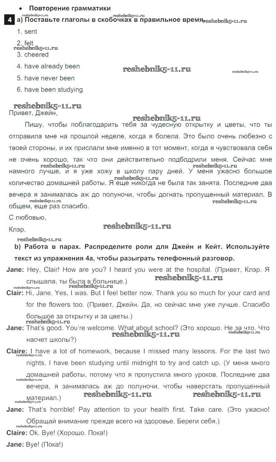 Готовая домашняя работа с ответами по Английскому языку за 8 класс Ваулина, Дули, Эванс, Подоляко Учебник Spotlight Просвещение 2015 ФГОС - Часть 1f 4