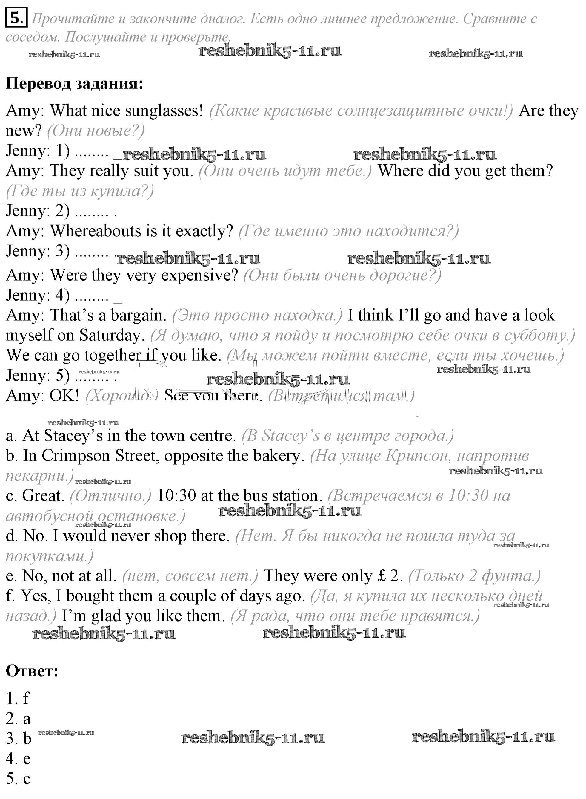 Готовая домашняя работа с ответами по Английскому языку за 8 класс Ваулина, Дули, Эванс, Подоляко Учебник Spotlight Просвещение 2015 ФГОС - Часть 2b 5