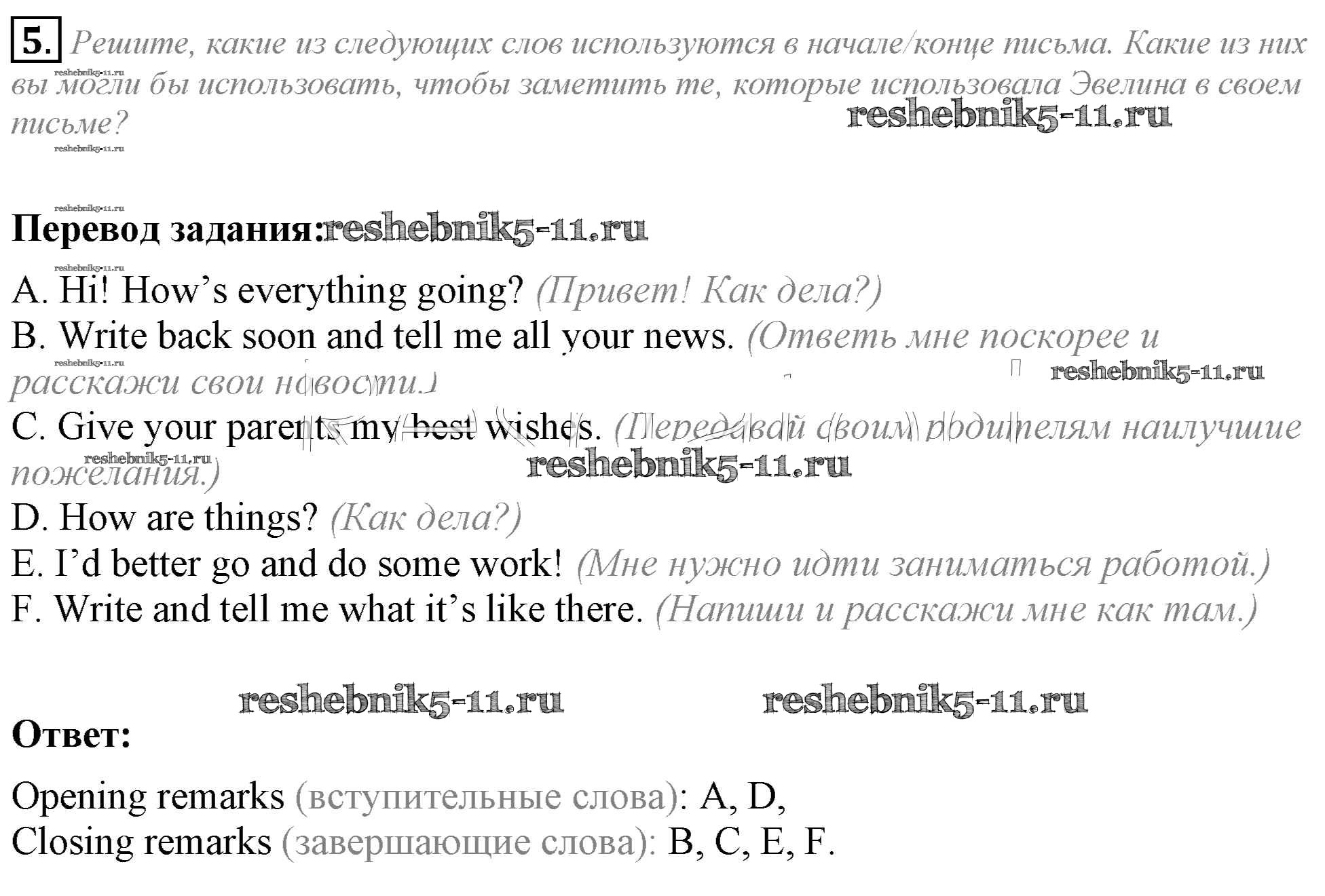 Готовая домашняя работа с ответами по Английскому языку за 8 класс Ваулина, Дули, Эванс, Подоляко Учебник Spotlight Просвещение 2015 ФГОС - Часть 2e 5