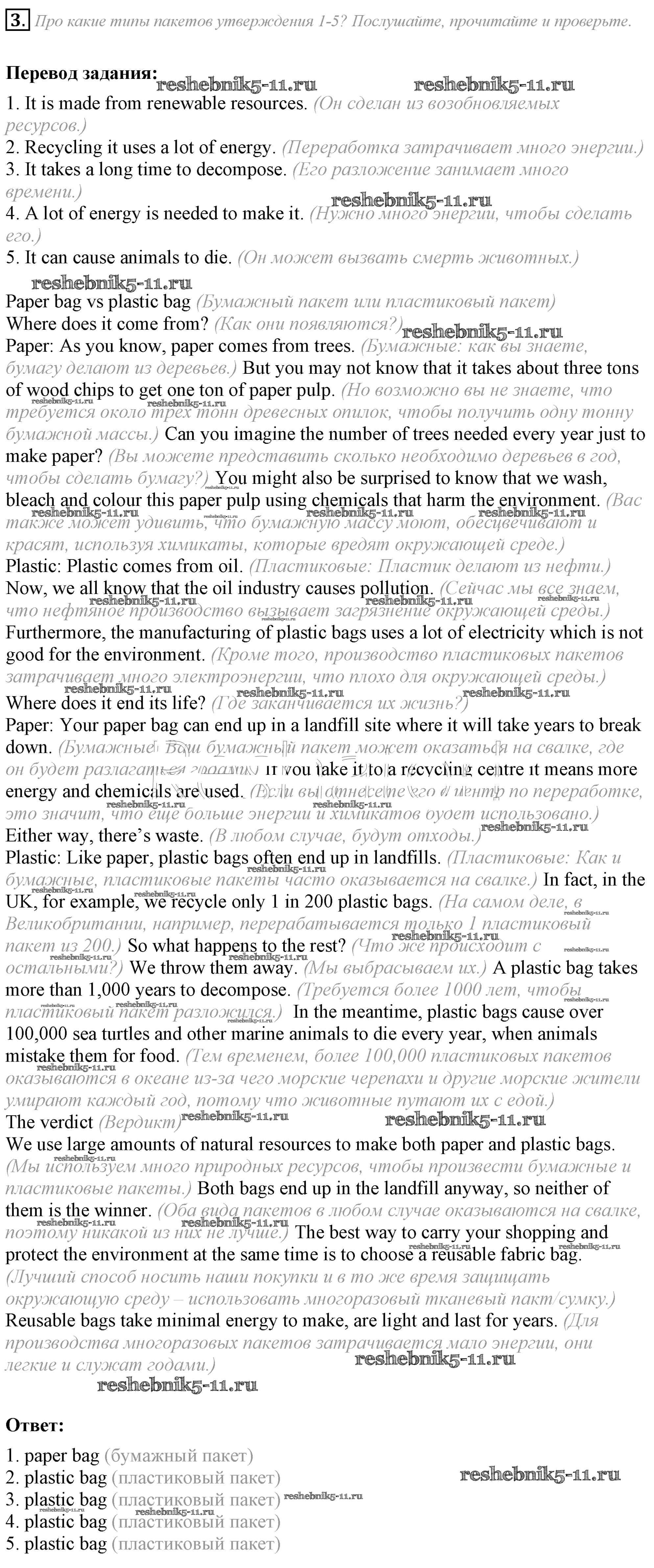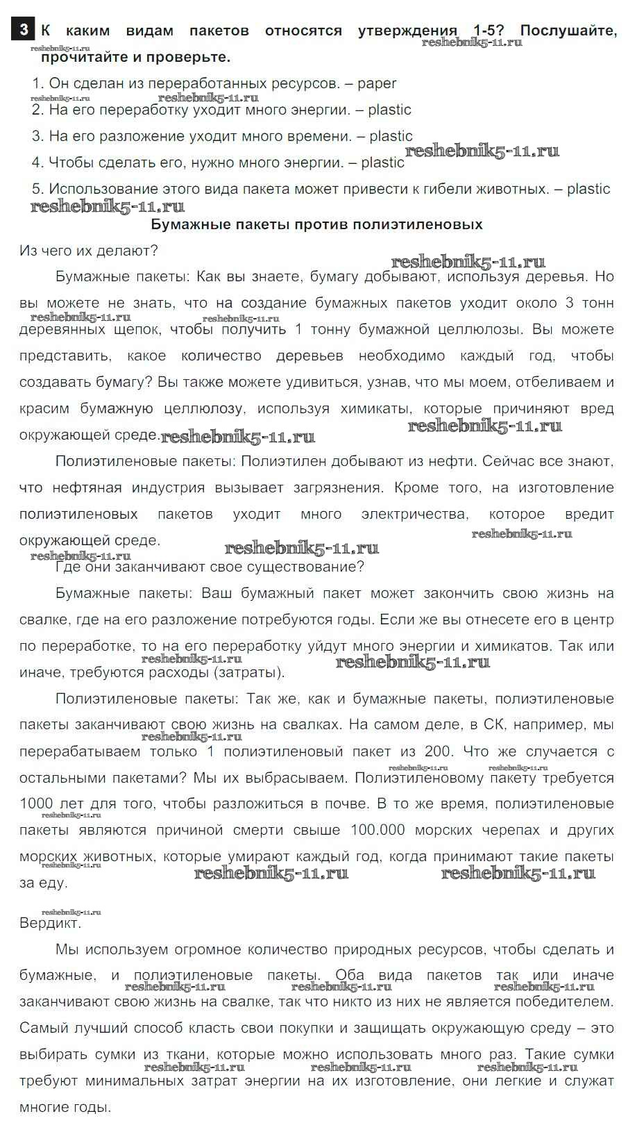 Готовая домашняя работа с ответами по Английскому языку за 8 класс Ваулина, Дули, Эванс, Подоляко Учебник Spotlight Просвещение 2015 ФГОС - Going Green 3