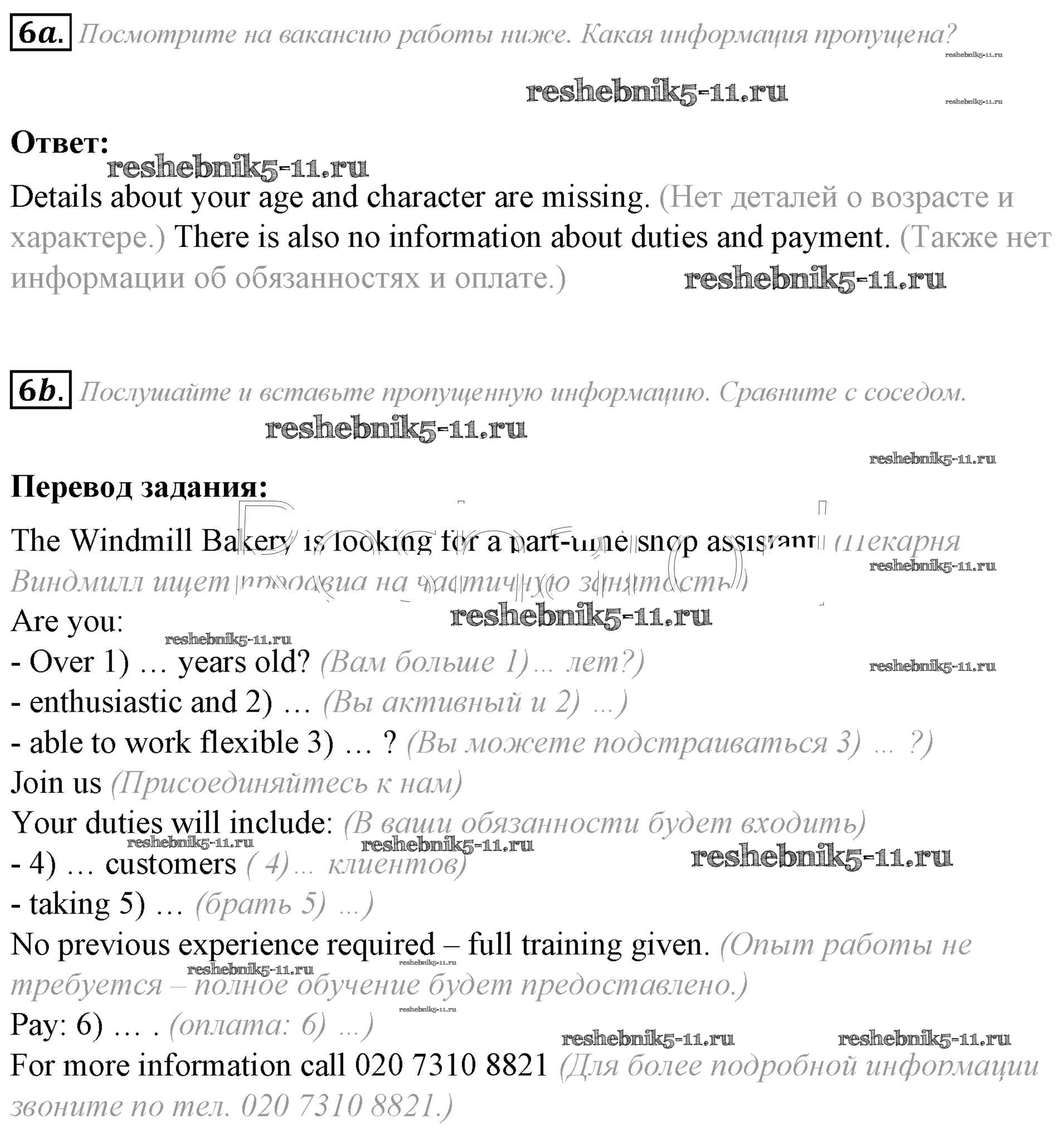 Готовая домашняя работа с ответами по Английскому языку за 8 класс Ваулина, Дули, Эванс, Подоляко Учебник Spotlight Просвещение 2015 ФГОС - Часть 3b 6