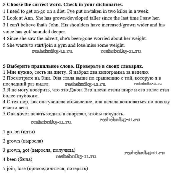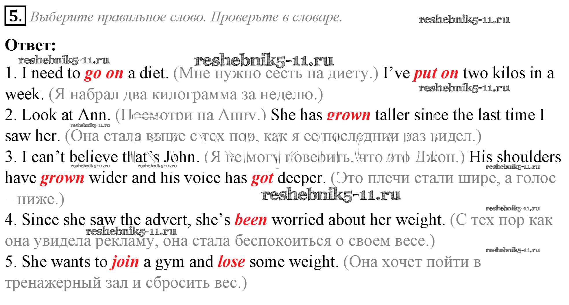 Готовая домашняя работа с ответами по Английскому языку за 8 класс Ваулина, Дули, Эванс, Подоляко Учебник Spotlight Просвещение 2015 ФГОС - Часть 4a 5